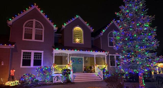 This Point Pleasant, NJ home was transformed by the team at Christmas Decor into a true holiday standout. Blue hues glow throughout the display, anchored by a stunning tall tree in the front wrapped in lights. The before-and-after photos show how this home took full advantage of its space to create one of the most eye-catching Christmas displays in town.