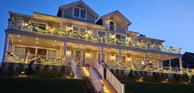 This holiday display in Belmar, NJ has multiple decks, looping garland along both railings adds instant charm and creates a cohesive holiday look from every angle. Layering greenery across each level brings a classic Christmas feel and gives the home a warm, special presence that lasts all season long.
