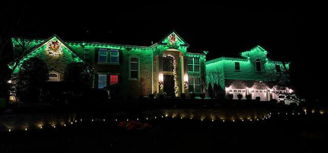 A show-stopping holiday transformation in Jackson Township, NJ. Our team installed roofline lighting that casts a rich green glow down the tone, creating a bold, elegant display that sets it apart from the rest. These before-and-after photos capture just how photos capture just how impactful a thoughtful designed lighting display can be.